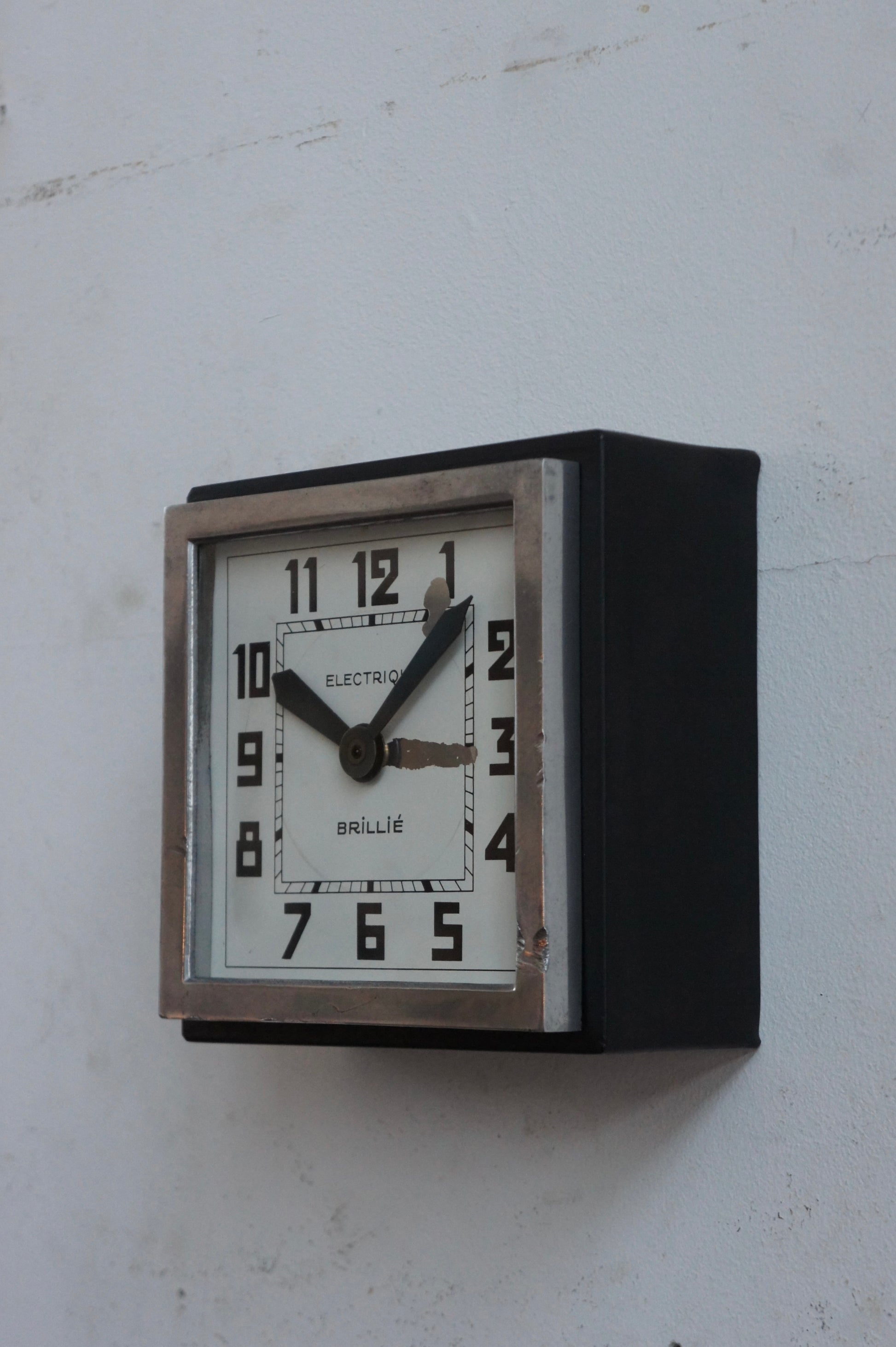 1940〜50年代頃、フランス・Brillié(ブリエ)社製のスクエア型ウォールクロック。